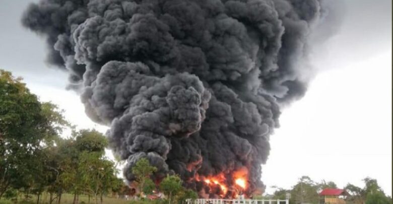 El atentado que fue perpetrado en la aldea de Miramar, que forma parte del municipio de Saravena, provocó un voraz incendio y una gigantesca nube de humo negro, así como un derrame de crudo que hasta el momento no ha afectado ningún cuerpo de agua ni a la comunidad que vive en las zonas cercanas a la emergencia.
